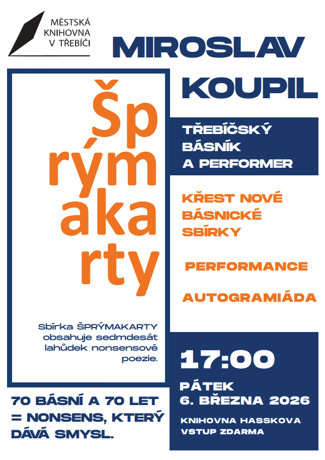 ŠPRÝMAKARTY/ Křest nové básnické sbírky třebíčského básníka a performera Miroslava Koupila