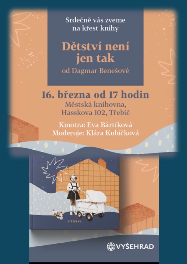 Dagmar Benešová a knihovna Vás srdečně zvou na křest druhého vydání knihy "Dětství není jen tak", které s krásnými ilustracemi Kateřiny Urbanové vydává nakladatelství Vyšehrad.