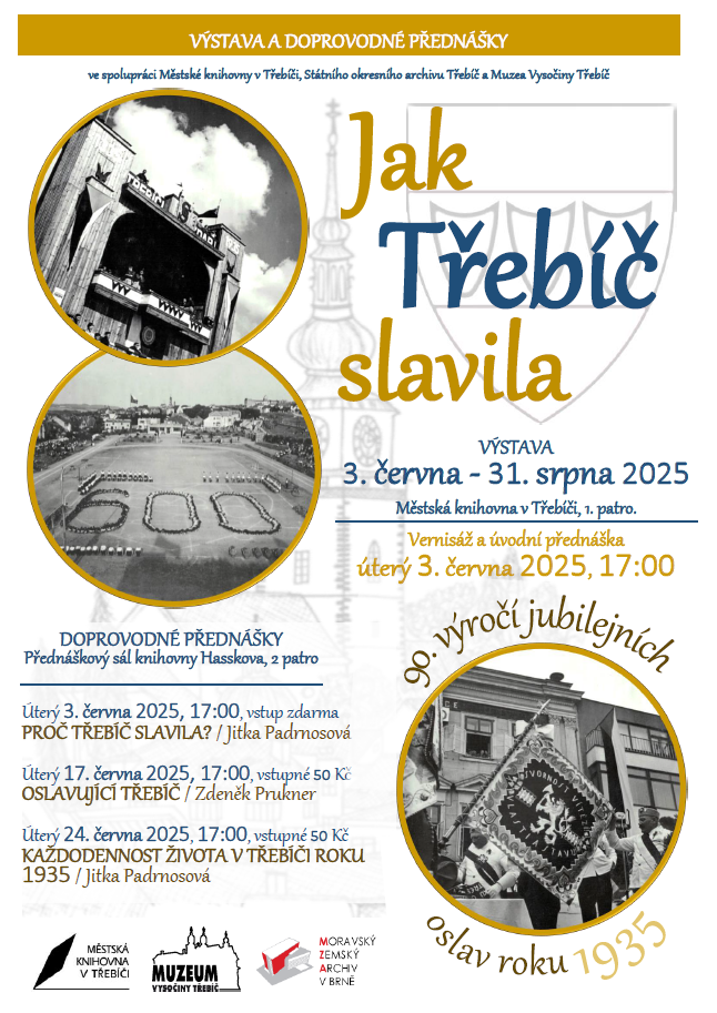 V úterý 3. června 2025 se koná vernisáž výstavy věnované 90. výročí jubilejních oslav. Tak se tehdy označovalo 600. výročí udělení městských práv, kdy se Třebíč právně stala plnohodnotným městem. Výstava pořádaná Městskou knihovnou Třebíč, Muzeem Vysočiny Třebíč a Státním okresním archiv Třebíč za podpory Virtuálního muzea staré Třebíče připomene velkolepé oslavy, které tehdy v průběhu roku třebíčští obyvatelé připravili a kterými si významnou událost z dějin města připomínali. Součástí výstavy je také přednáškový cyklus.