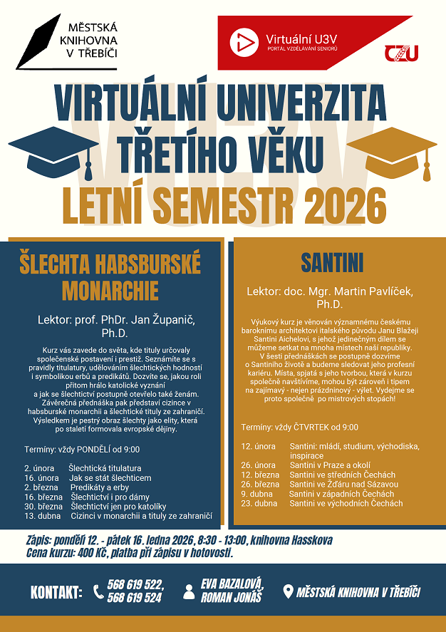Obsah kurzu: Kurz vás zavede do světa, kde tituly určovaly společenské postavení i prestiž. Seznámíte se s pravidly titulatury, udělováním šlechtických hodností i symbolikou erbů a predikátů. Dozvíte se, jakou roli přitom hrálo katolické vyznání a jak se šlechtictví postupně otevřelo také ženám. Závěrečná přednáška pak představí cizince v habsburské monarchii a šlechtické tituly ze zahraničí. Výsledkem je pestrý obraz šlechty jako elity, která po staletí formovala evropské dějiny.